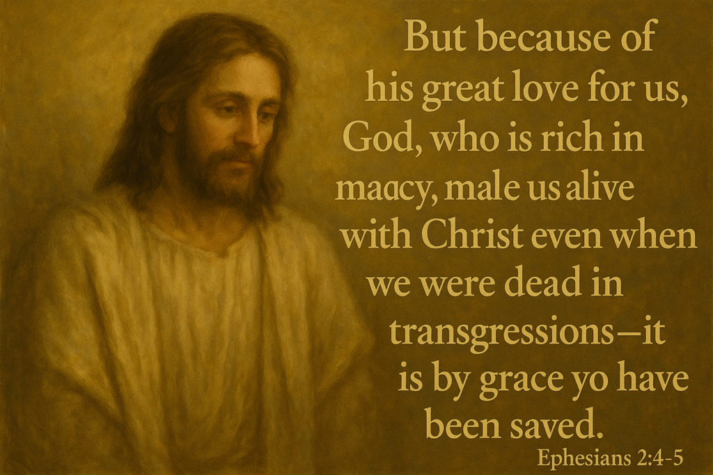 “But because of his great love for us, God, who is rich in mercy, made us alive with Christ even when we were dead in transgressions—it is by grace you have been saved.”