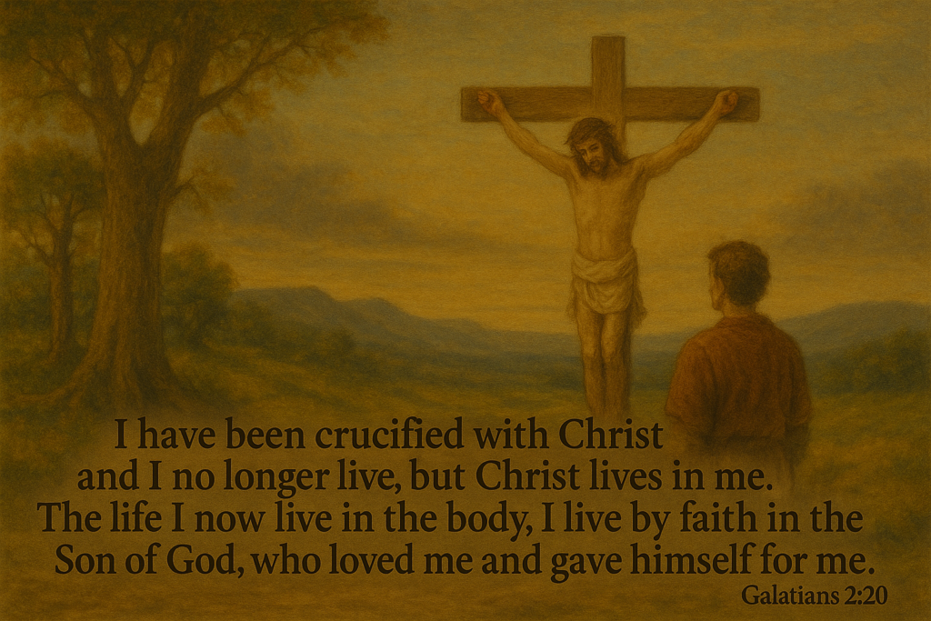 “I have been crucified with Christ and I no longer live, but Christ lives in me. The life I now live in the body, I live by faith in the Son of God, who loved me and gave himself for me.”