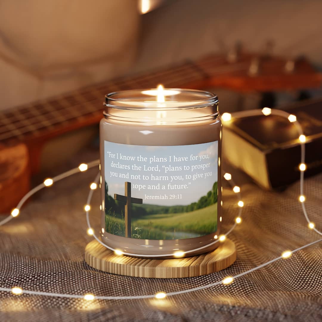 Made to soothe long and stressful days, this custom candle jar can accommodate all your ideas, artwork, or inspirational quotes on its custom candle label. The candle itself is made 100% with a natural soy wax blend and cotton wick. Choose between fragrances such as Vanilla Bean, Comfort Spice, Sea Breeze, Unscented, Fresh Balsam, Spiced Pumpkin Ginger, Pink Grapefruit and Eucalyptus Lavender Herb.