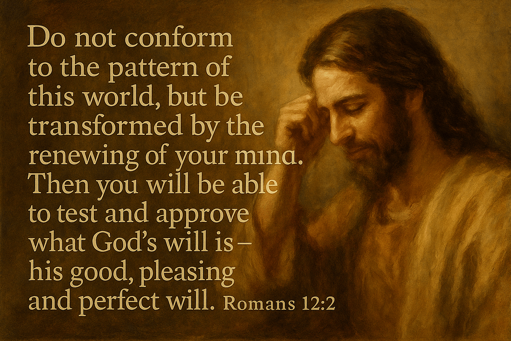 “Do not conform to the pattern of this world, but be transformed by the renewing of your mind. Then you will be able to test and approve what God’s will is—his good, pleasing and perfect will.”